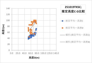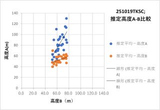 3)TKSC251019での配置図、および当日の26機(試射を含むと28機)の高度推定値の差の変化;